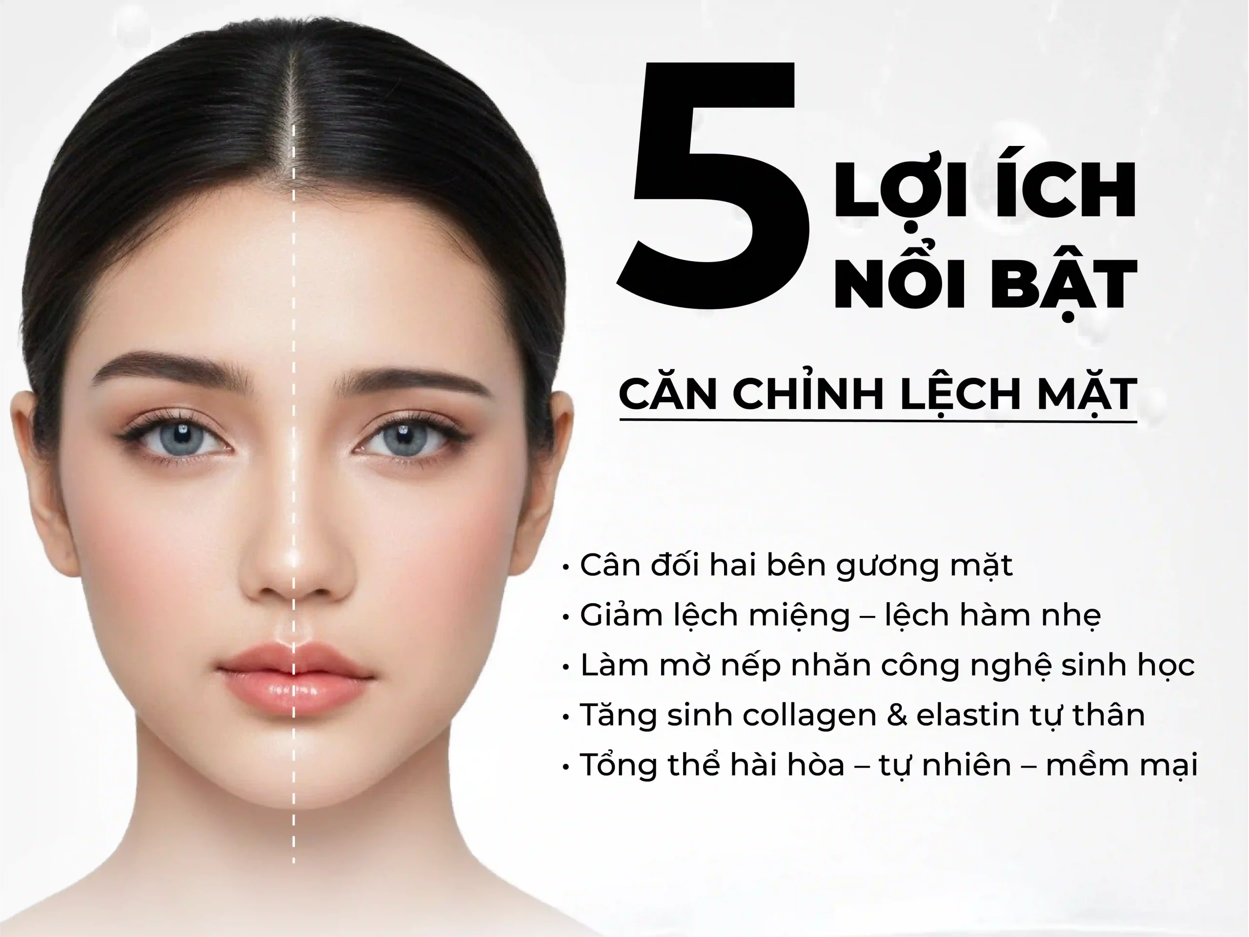 Cân chỉnh mặt lệch là phương pháp thẩm mỹ giúp cải thiện tình trạng hai bên khuôn mặt không cân đối như lệch hàm, lệch cằm hoặc cơ mặt phát triển không đều. Tình trạng mặt lệch có thể xuất phát từ cấu trúc xương, thói quen sinh hoạt hoặc do quá trình lão hóa.